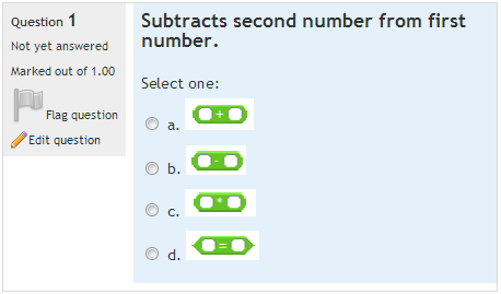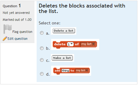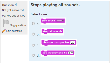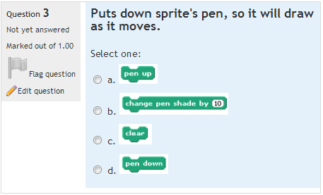 Click here to learn how to import these Scratch 1.4 quizzes into your own Moodle.