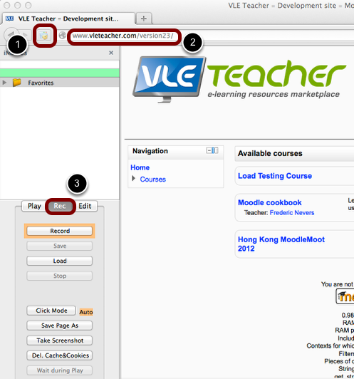 iMacros records your web browsing activity so that you can later simulate the actions of a real Moodle user, all automatically. For example, you start up Firefox and set iMacros to record. You go about your daily business on Moodle as normal (e.g. login, view your course, add an assignment, answer some forum posts and logout), iMacros keeps a record of everything you click on during your session, including all the forms that you fill in until you press ‘Stop recording’. Those steps are saved in a macro, which you can then play back later by opening that macro. This means that you can press the ‘play’ button and Firefox will repeat all of the steps that you did during your session, without any more interactions from your part, thus automatically simulating the web browsing activities of a Moodle user. You can ‘loop’ the action to repeat it automatically as many times as you like.
