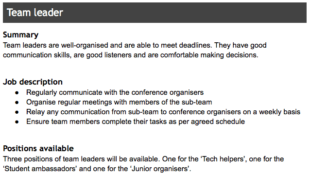 There are several strategies that can be used to recruit the right students for the jobs you need. Here are some of the strategies we used when organising the ECIS Technology Conference 2015.